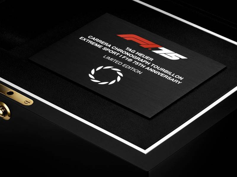 此款时计配备特别设计的黑色表盒,表盒饰有F1® 75官方标志与“TAG Heuer”标识,并以胜利花环点缀,致敬竞速精神的不朽传奇。每枚腕表皆镌刻其专属冠军加冕年份,而表盒则采用统一设计,遵循同承一脉、勇敢无畏的竞速精神。自表壳至表盘,自表带至机芯,每一处细节皆精益求精,颂赞泰格豪雅闻名于世的计时精准度与卓越性能。
