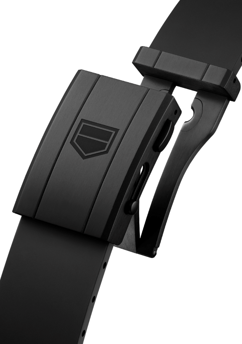 作为泰格豪雅卡莱拉系列Extreme Sport计时码表家族的最新成员,这款限量版腕表以颠覆性设计语言,将品牌前卫大胆的设计美学推向全新高度。44毫米直径,经过精细磨砂和喷砂处理的钛金属表壳,搭配醒目的18K黄金固定表圈,以及抛光处理的黑色DLC涂层5级钛金属表冠与计时按钮,既彰显了腕表在现代设计理念下的卓越耐久性,更散发出历久弥新的隽永尊贵气息。一体式黑色橡胶表带搭配同色DLC涂层钛金属表扣确保兼具舒适度与运动感的佩戴体验,与腕表的性能导向设计相得益彰。标志性的开放式结构表盘以镀18K黄金工艺润饰,搭配铑镀时标与指针,凸显计时功能的同时确保清晰易读性——忠实传承杰克 · 豪雅的设计初衷。9点钟与3点钟位置的银色计时盘采用“Azurage”润饰工艺,搭配镀18K黄金计时指针,呈现鲜明的视觉对比效果,并提供出众的计时精准度。此外,表盘外缘环绕黑色测速刻度圈,保障卓越的计时性能。